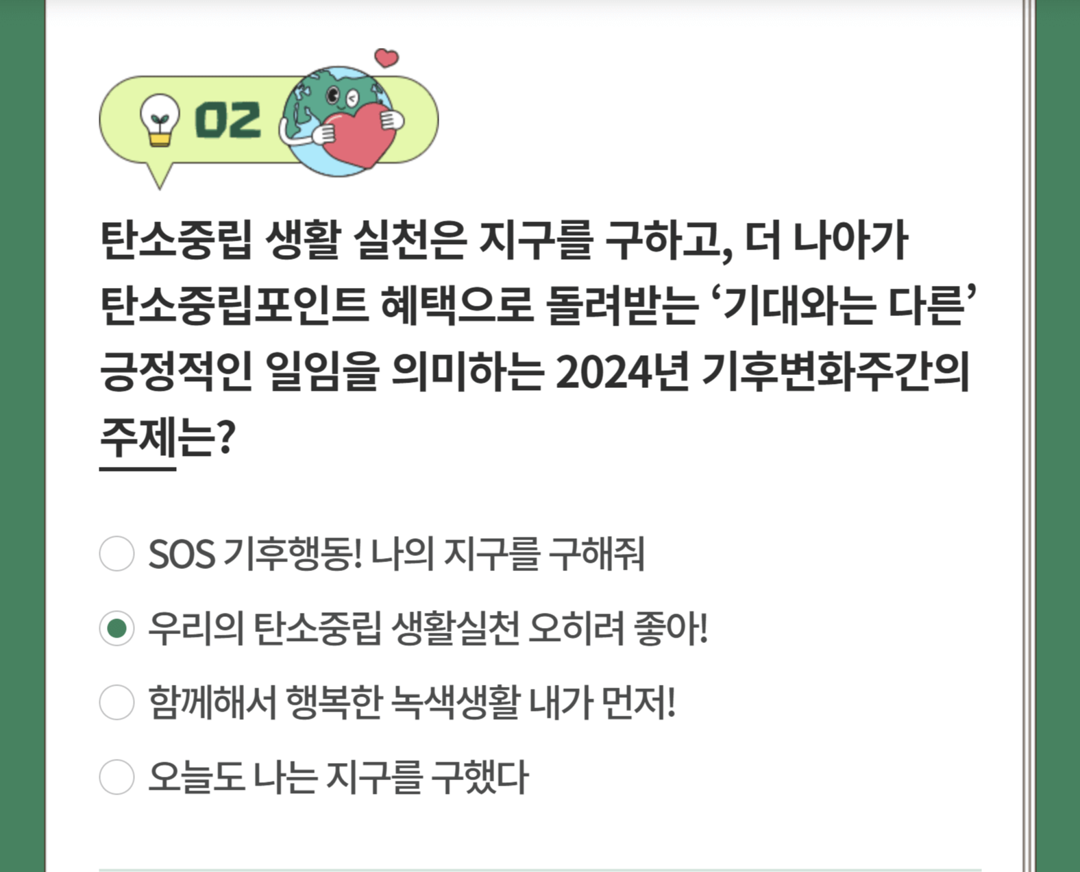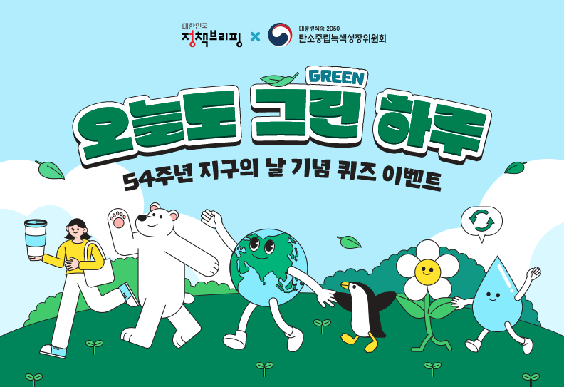 대한민국 정책브리핑 홈페이지에서는 54주년 지구의 날을 기념하며 퀴즈 이벤트를 진행합니다.